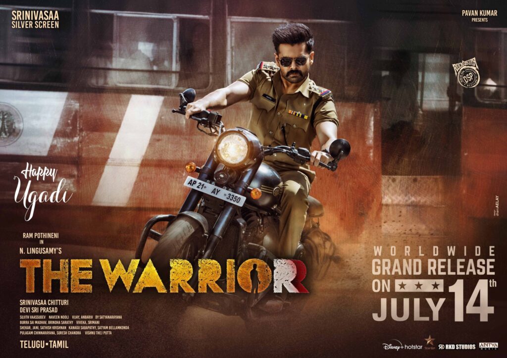 The makers of Ram Pothineni-starrer The Warriorr, directed by N Lingusamy unveiled a new poster, which features Ram Pothineni riding a macho bike with police uniform. The film will have a grand release on July 14.