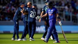Indian top-order fell like ninepins as Reece Topley’s 6 for 24 headlined a fine England bowling performance in a series-levelling 100-run win while defending a modest target in the second ODI at the Lord’s on Thursday. Wth parity restored in the three-match series, the decider at the Old Trafford in Manchester on Sunday promises to be a mouth-watering contest. When the Indian bowlers put up another impressive show to bowl out England for 246 in 49 overs, little did one know that the visiting batters would inexplicably implode for a paltry 146 in 38.5 overs in the face of nice seam and swing bowling from Topley. David Willey (1/27 in 9 overs), seasoned Moeen Ali (1/30) and Liam Livingstone (1/4) also played their parts to perfection. Topley’s figures were the best by an Englishman at the ‘Mecca of Cricket’. Having won the first game by 10 wickets, the Indian team couldn’t have comprehended that the wheels of fortune would turn so swiftly. With Shikhar Dhawan, Rohit Sharma, Virat Kohli and Rishabh Pant all back in the dressing room just after the first Powerplay and only 31 runs on board, there was only one possible result.