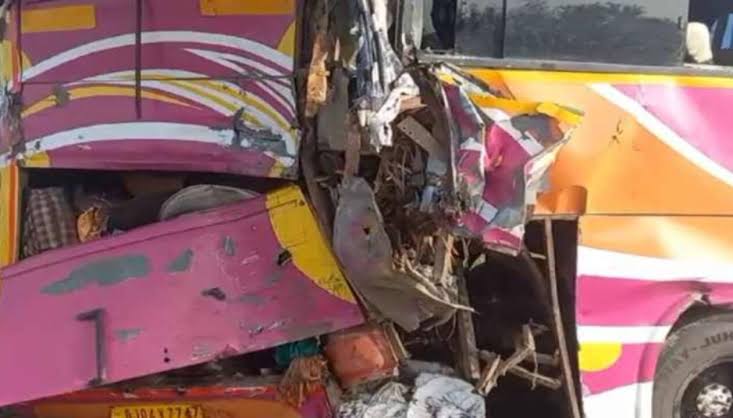 The accident took place on the highway near Hantra while the bus was on its way from Gujarat’s Bhavnagar to Mathura in Uttar Pradesh.