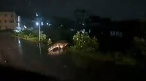 The adult mugger crocodile that was spotted crossing the Perungalathur-Nedungundram road about 10 days ago, has been captured on Wednesday by wildlife officials. Amidst the heavy rainfall and flooding due to Cyclone Michaung that has affected Chennai, a mugger crocodile was spotted on a flooded road in the Perungalathur area. The mugger crocodile, which was spotted by passers-by near Velammal School along the Perungalathur-Nedungunram road on Sunday night had sparked concern among the residents and forest department officials. The crocodile was seen crossing the road near Perunguathur and entering the bushes.