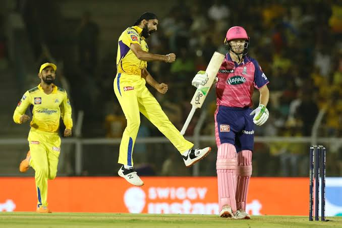 CSK’s bowling attack continued to exert pressure on the RR batsmen, with Deshpande also making significant contributions by taking two important wickets towards the end of the innings. The spin duo of Theekshana and Jadeja proved to be effective, maintaining control over the RR batting lineup and restricting them from building substantial partnerships.