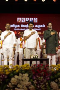 Vijay left his Neelankarai residence at 8:45 AM, greeted by enthusiastic party cadres along the way. He arrived at the venue by 9:30 AM, receiving a red carpet welcome amid loud cheers from the crowd. The event officially began at 10 AM, with TVK General Secretary Anand welcoming Vijay with a floral bouquet. He was joined on stage by Adhav Krishna, TVK’s Election Strategy Head, and Prashant Kishor, leader of Jan Suraaj Party.