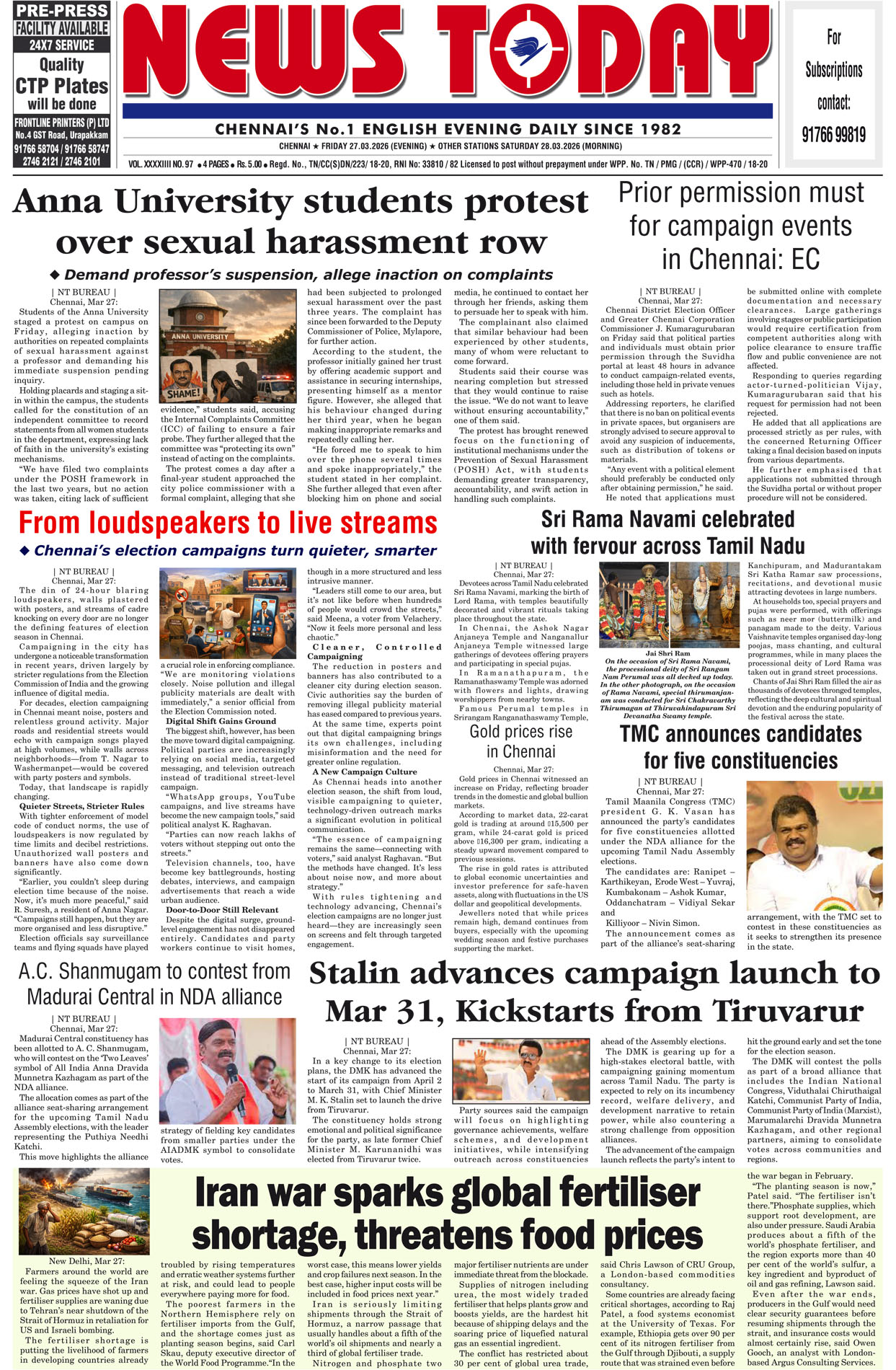 Home » E-paper 27 March 2026